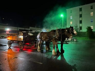 For larger events, promotions, weddings, funerals, and parades we have a selection of horse drawn vehicles including an antique Nissen wagon, caisson, vis-a-vis, or a 12 passenger wagon pulled by a team of Shire Horses. Please call to inquire about pricing. 828-432-6040